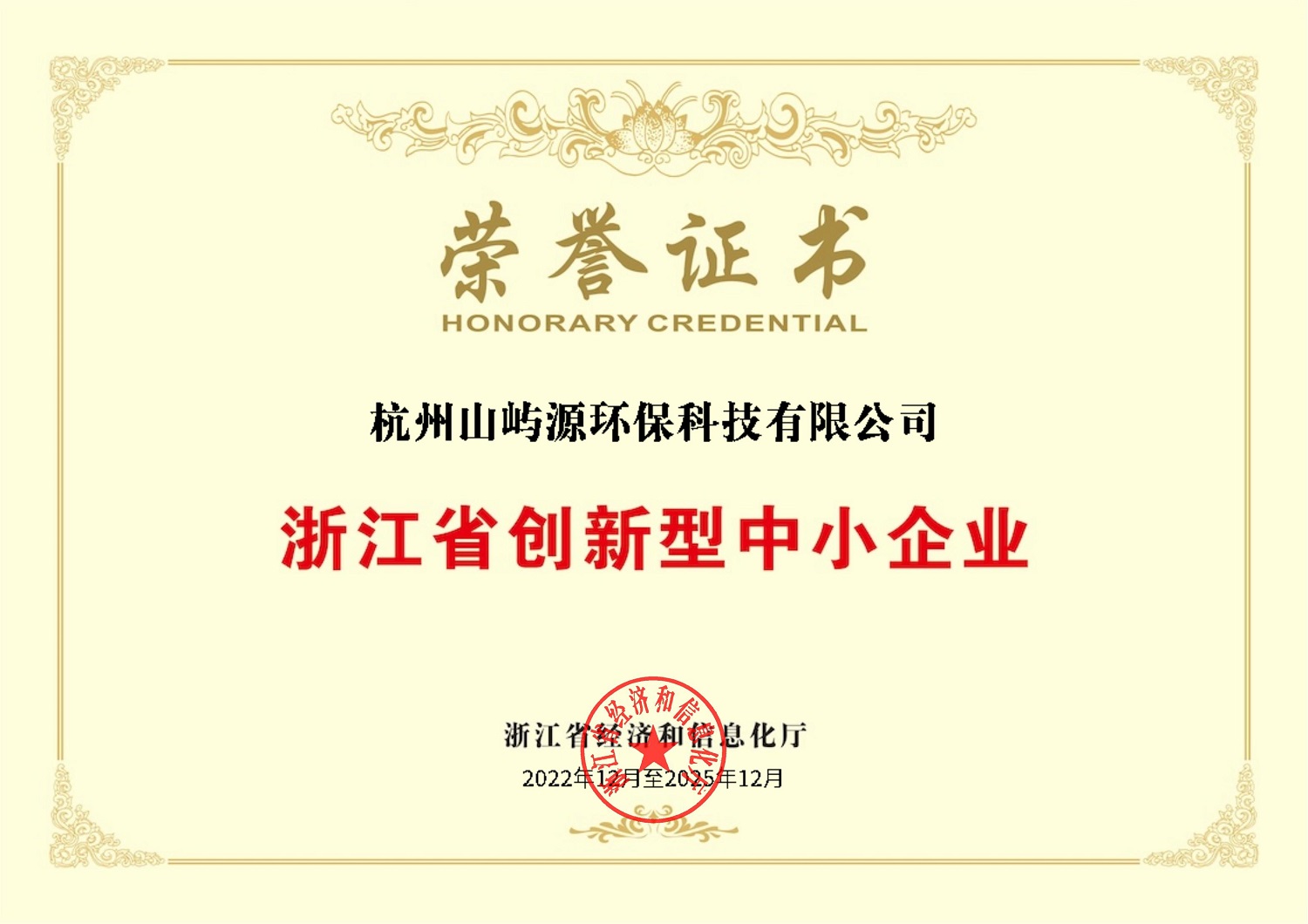 山嶼源環保,是國家高新技術企業、國家科技型企業、浙江省專精特新企業、浙江省環保產業協會會員單位、廣東省造紙行業協會會員單位、市級高新技術研發中心、杭州市專利示范企業。公司具有環境工程(水污染防治工程)、市政行業(給水工程、排水工程)設計資質、環保工程專業承包資質、電子與智能化工程專業承包資質、市政公用工程施工總承包資質、機電工程施工總承包資質。